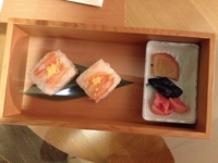 食事を終え部屋に帰ると、そこには「夜食」が届けられていました。完全に洋風になっている口を、一口の蟹の寿司がリセットしてくれます。